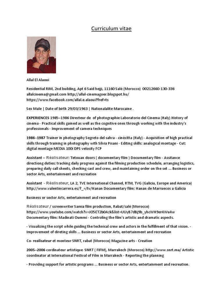 Curriculum Vitae Of Allal El Alaoui Mass Media Entertainment